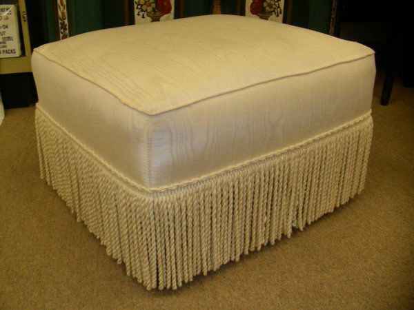 WHITE SQUARE OTTOMAN WITH FRINGE