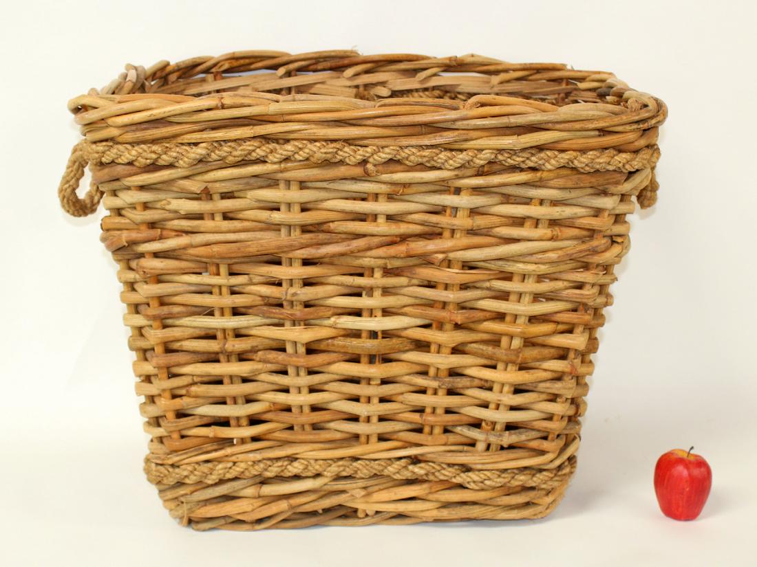 Vintage Wicker Basket with Braided Rim and Twisted Handle