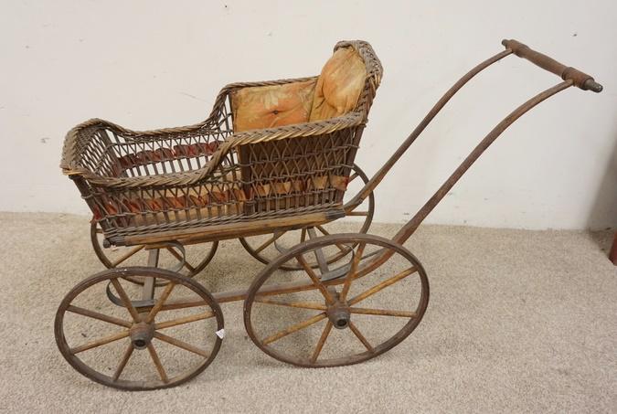 SoldAntique Wicker Doll CarriageAntique Wicker Doll Carriage. ALL DESCRIPTIONS AND ANY CONDITION STATEMENT GIVEN BY LANGSTON AUCTION GALLERY ARE STRICTLY OPINIONS AND LANGSTON'S SHALL HAVE NO RESPONSIBILITY FOR ERRORS OR OMISSIONS.See Sold Price