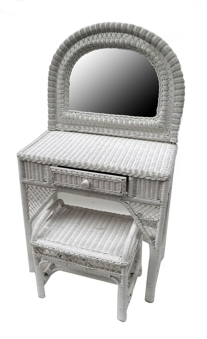 Restored Art Deco Frankl Style Stacked Rattan Vanity w/ Round Mirror & StoolHARVEYS ON BEVERLY$5,0001 day Left