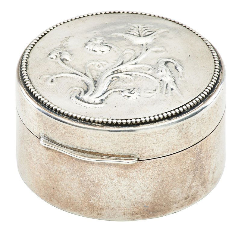 Georg Jensen Sterling Silver Compact No. 79C, DenmarkFeb 26, 2026Antique Sterling Silver Trinket/Keepsake Case with Raised Floral DesignGerman Silver Till Box2 days LeftRare Art Nouveau 800 Sterling Silver Box by M & K GermanyMar 04, 2026Antique Sterling Silver Cigarette Box, Birmingham, Early 1900s1 day LeftGerman Hanau 800 Silver Repousse Box C.1880-19104 days LeftAN ANTIQUE SILVER ETROG BOX. Probably Germany, early 20th century.8 hrs LeftLarge Antique Chinese Silver & Gilt Covered Box with Insert, Qing DynastyFeb 17, 2026A SILVER ETROG BOX. Augsburg, 18th century.8 hrs LeftAN AUSTRIAN SILVER BOXFeb 17, 2026TIFFANY & CO. 1889 Art+Craft Round Box In Hammered .925 Sterling Silver10 hrs LeftA continental silver box probably Hanau, late 19th / early 20th century, unattributed makerGerman 750 Silver Vinaigrette Box Kecker Before 18864 days Left1960s Sterling Silver Etrog Box from Italy with Swirl DesignMar 03, 2026Antique 1894 Gorham Besamim Holder Sterling Silver Repousse Box4 days LeftA Vintage Godinger Silverplate Floral Jewelry Box with Velvet Interior14 hrs Left