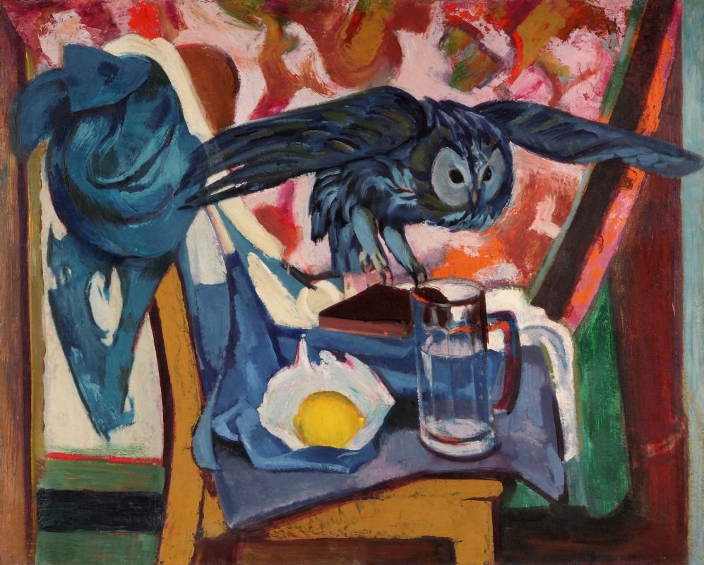 Wilhelm Lachnit "Stilleben mit Eule". Um 1954.
