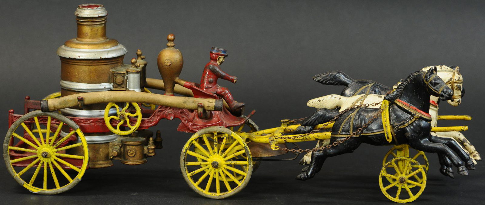ASSORTED VINTAGE CAST-IRON TOYS, LOT OF THREEMar 05, 2026Model of 2 draft horses hitched to hay wagonMar 27, 2026Toy Fire WagonMar 14, 2026Oversized Two Horse Fire PumperMar 07, 2026Mechanical Fire PumperMar 07, 2026Three Horse Fire PumperMar 07, 2026Two Horse Fire Pumper - 1912 VersionMar 07, 2026Transitional Deluxe Two Horse Hose ReelMar 07, 2026Three Horse Fire PumperMar 07, 2026Dent cast iron fire hose reel carriageMar 27, 2026One Horse Fire Patrol TruckMar 07, 2026Two Horse Fire Pumper - Rubber TiresMar 07, 2026Black Two Horse Ladder WagonMar 07, 2026Three Horse Hook & Ladder Truck with Figures Cast into the FrameMar 07, 2026WATROUS MANUFACTURING CO. CAST-IRON AND STEEL CART WITH HORSE / CLOWN BELL PULL TOYMar 05, 2026Two Horse One Seat SurreyMar 07, 2026