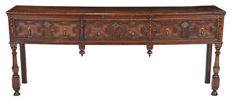 ANTIQUE WELSH OAK DRESSER, 3 DRAWERS, TURNED LEGSFeb 22, 2026ENGLISH OAK SERVERFeb 21, 2026RENAISSANCE STYLE CARVED WOOD 2-DRAWER WRITING TABLE / DESKFeb 22, 2026Stickley Inlaid Oak Harvey Ellis DeckFeb 21, 2026A TUDOR STYLE OAK AND MARQUETRY DRAW LEAF TABLE, 19TH CENTURYMar 03, 2026LARGE 19TH CENTURY CHESTFeb 21, 2026A GEORGE III OAK AND MAHOGANY CROSSBANDED DRESSER BASE, EARLY 19TH CENTURYMar 03, 2026Hekman George III Console Table Mahogany with Dovetailed DrawersFeb 27, 202618th Century Old English Oak Paneled Blanket ChestFeb 21, 2026Delaware Valley Chippendale Walnut Dressing Table, Samaha ProvenanceFeb 26, 2026EXCEPTIONAL GRIFFIN CARVED OAK SLANT LID DESK,Feb 21, 2026ENGLISH WILLIAM KENT STYLE MAH. SERPENTINE COMMODEMar 07, 2026JACOBEAN STYLE HAND CRAFTED DOWRY CHEST CRAFTED FROM QUARTER SAWN OAK WITH FORGED HARDWAREAn oak dresser base, 18th century and later,FEDERAL BOSTON SEYMOUR WORKSHOP MAHOGANY SIDEBOARD.Feb 25, 2026A WALNUT AND SEAWEED MARQUETRY CHEST OF DRAWERS, 18TH CENTURY AND LATERMar 03, 2026