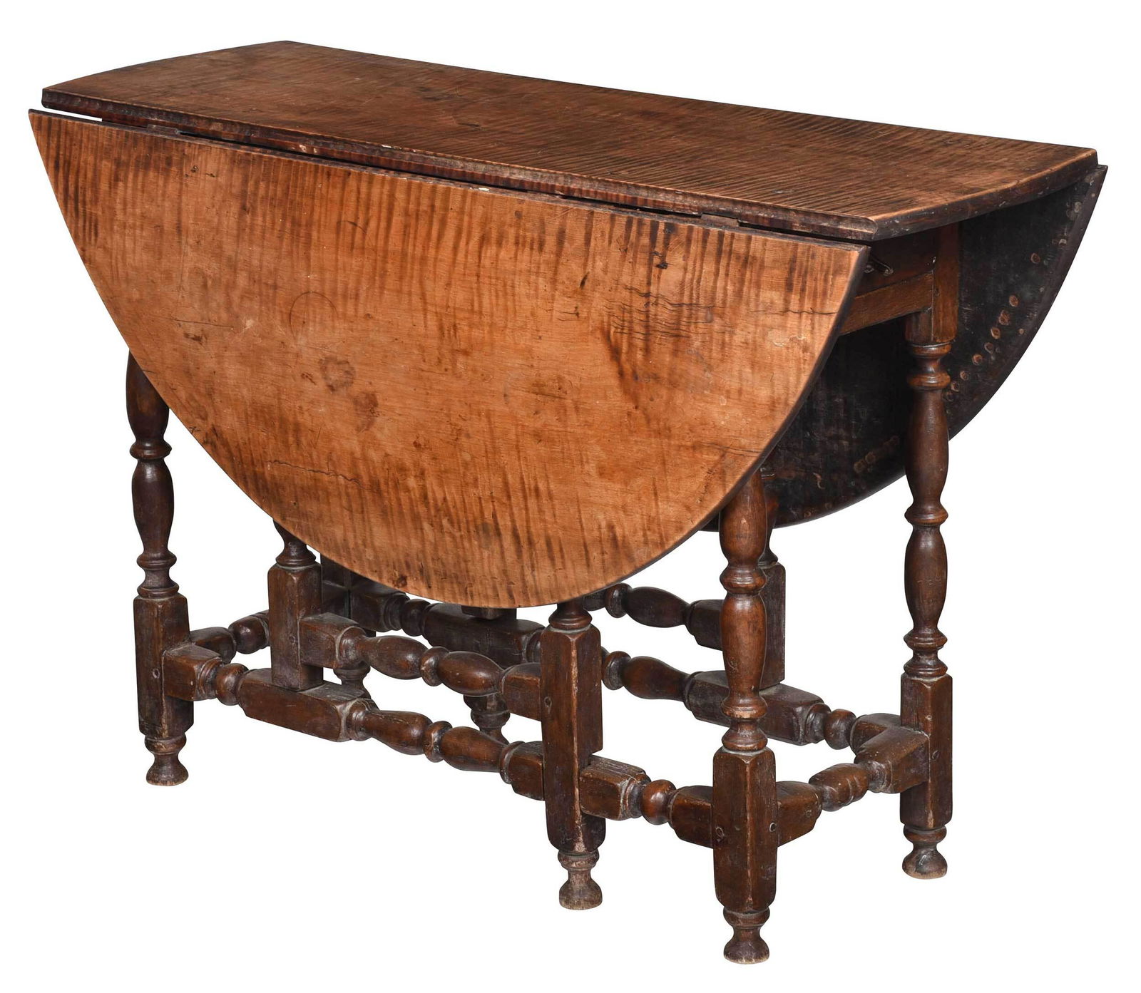 William and Mary Style Tiger Maple Gate Leg Table