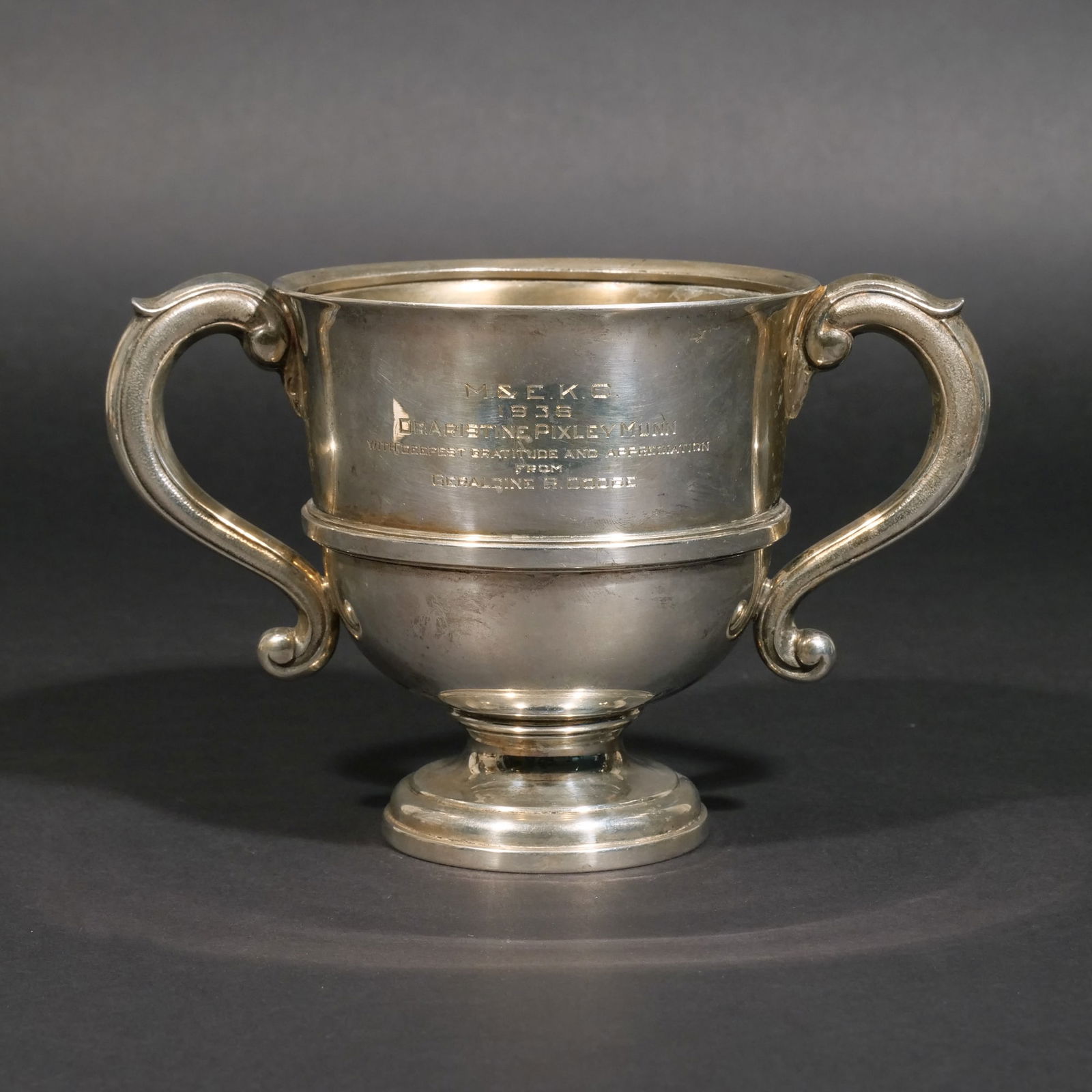 WILLIAM B. MEYERS STERLING TWO HANDLE TROPHY CUP