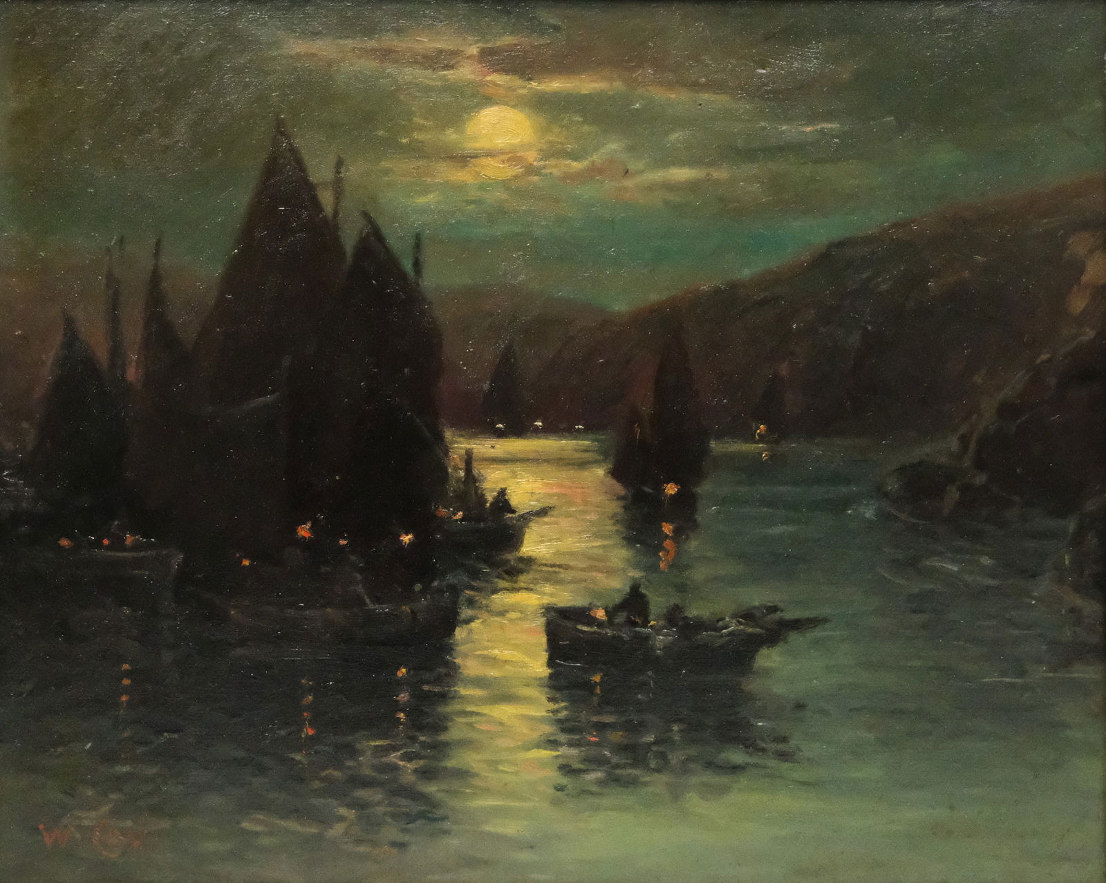 Alan Furneaux (British, born 1953) Moonlit Harbour (unframed)Alan Furneaux (British, born 1953) St Ives Harbour at Night (unframed)Viktor Ilyushkin (Russia,b 1946) oil paintingJun 07, 2026L Guinther (Europe,20C) oil paintingJun 07, 2026Paul Barnes (US,early 20C) oil painting antiqueMay 03, 2026Antique early 20C American oil painting signedMay 17, 2026J Stewart (UK,20C) oil paintingMay 17, 2026Antique early 20C British oil paintingMay 17, 2026Walter Moras (German,1854/56-1925) oil painting antiqueApr 05, 2026Antique 19C American oil paintingMay 17, 2026Louis Etienne Timmermans (France,Belgium,1846-1910) oil painting antiqueMar 15, 2026Vintage 20C European oil painting signedMay 24, 2026Vintage mid 20C Italian oil paintingApr 12, 2026Vintage mid 20C American oil painting signedJun 07, 2026Mary Mellen style 19th century moonlight seascape with boats. Oil on board. Unframed. Inscribed on2 hrs LeftGeorge W. Waters, 1832-1912 Signed Nocturnal American Moonlit Seascape Rare Antique Oil PaintingMar 22, 2026