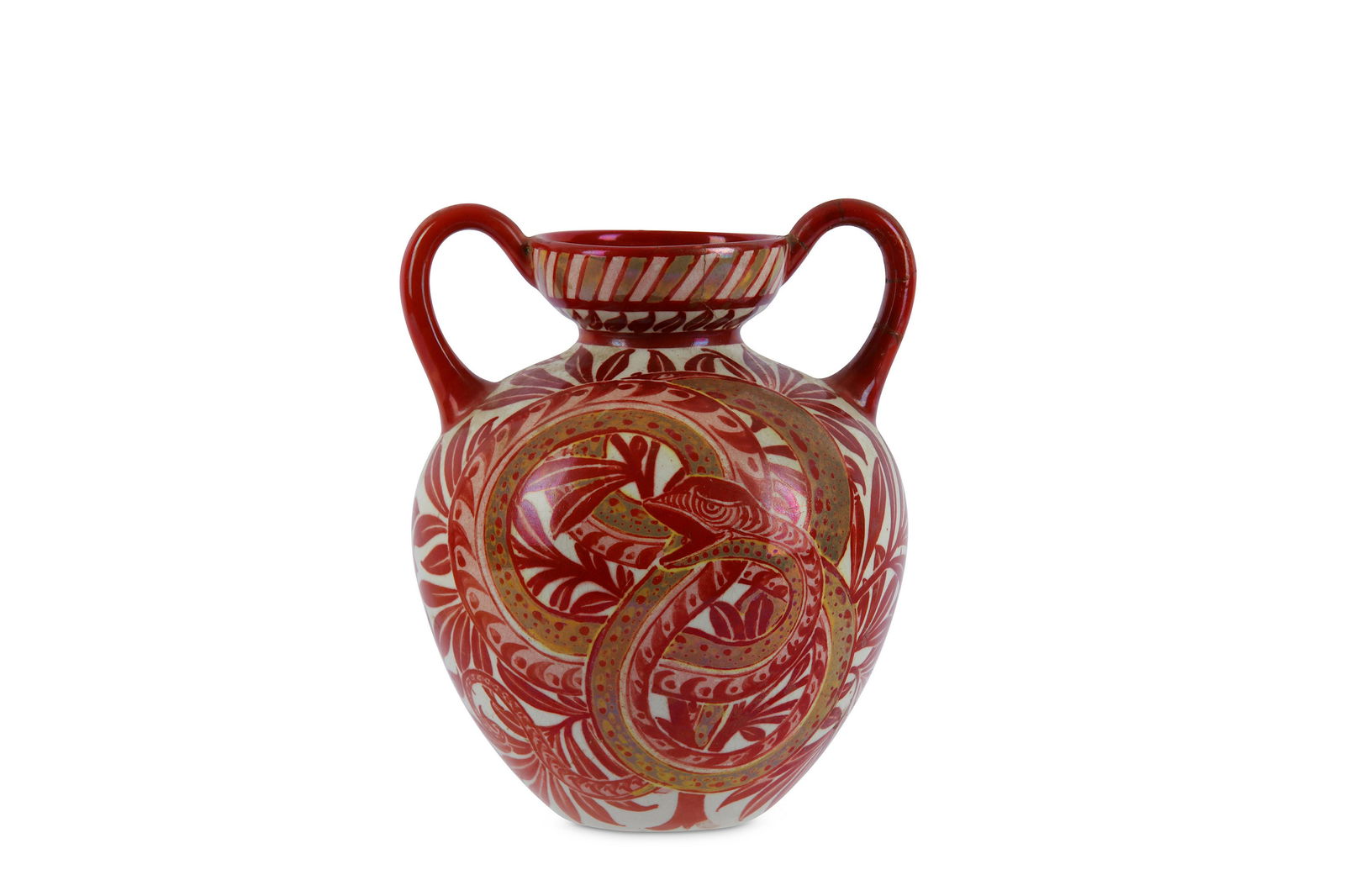 William de Morgan - A two handled ruby lustre snake
