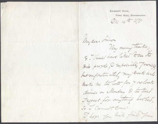 WILLIAM MORRIS (1834-1896) SIGNED HANDWRITTEN LETTE