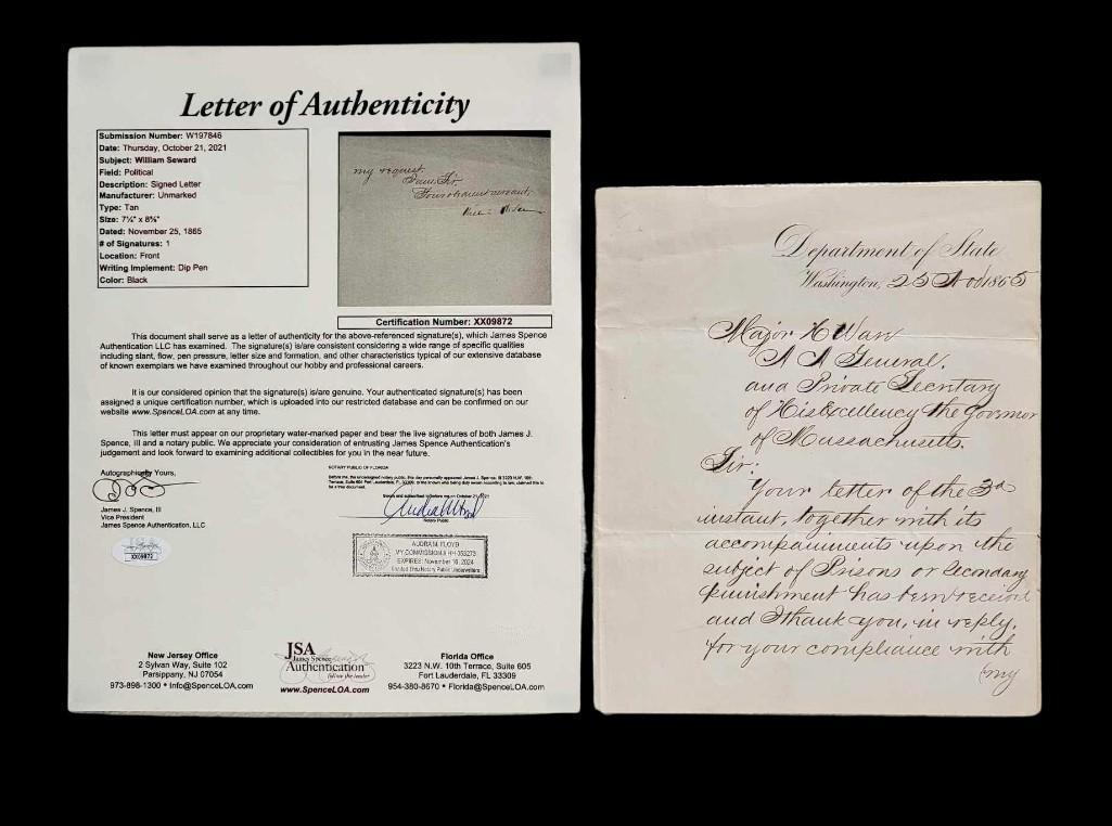 William Seward Signed Letter c.1865