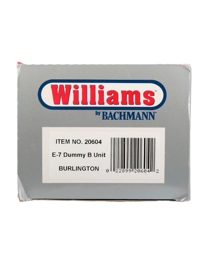SoldWILLIAMS - Burlington E-7 dieselWILLIAMS - Burlington E-7 diesel Runs forward. Not backward. O Gauge E7-203 R7 35.5W 2.5D 3.5H All Train and Train accessories in thisSee Sold Price