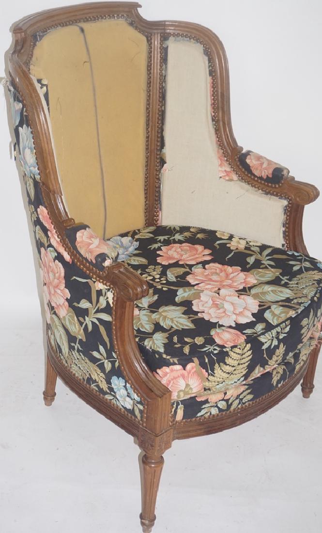 SoldAntique Biedermeier wood frame wing back chair.Antique Biedermeier wood frame wing back chair. Floral upholstery-- Dimensions: H: 44.5 inches: W: 26 inches: D: 25 inches ---See Sold Price