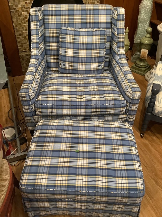 Winged armchair on rollers with ottoman(new)