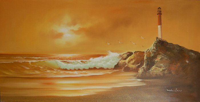 Vintage Scenic Oil On Canvas "Breakers At Beach"