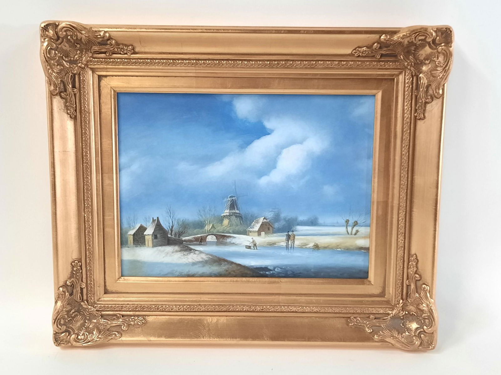Framed Original Oil Painting European Landscape Windmill Signed Frederiks
