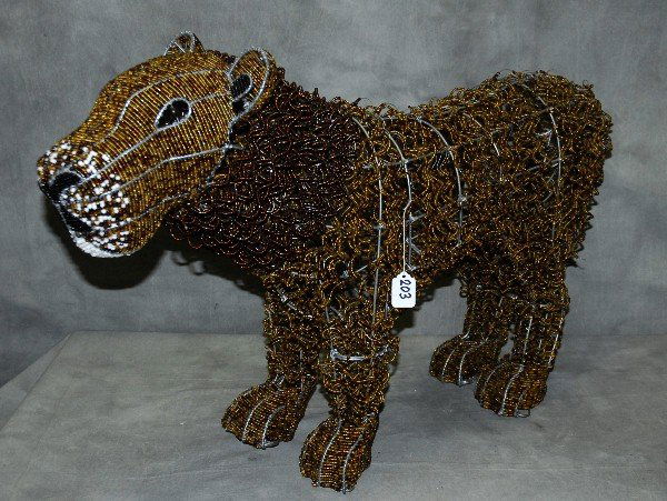 Wire beaded lion. H:22" L:35"