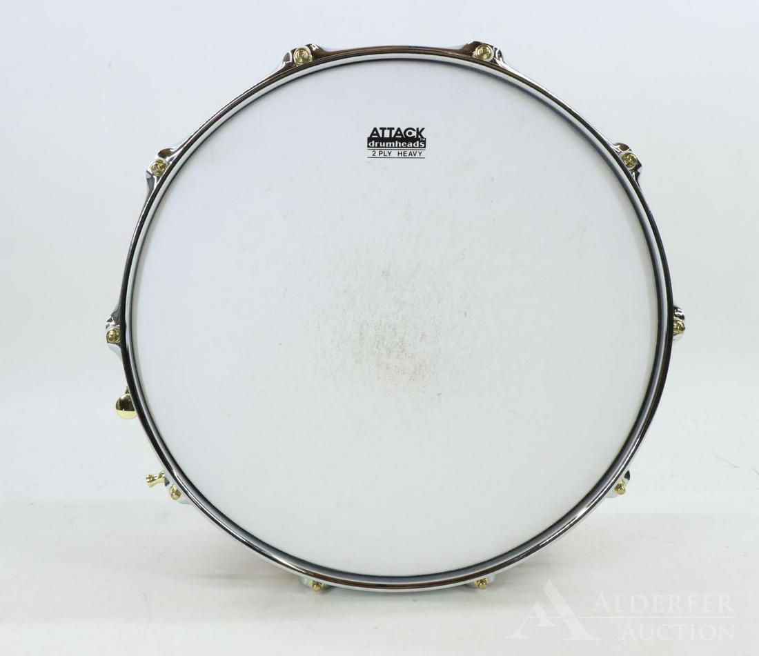 SoldKISS Kruise V Eric Singer Show Used Snare DrumKISS KRUISE V Drum set Snare Drum. This Pearl Free Floater Snare Drum was used by Eric Singer of KISS for both nights that KISS played on the cruise. (Snare Drum ONLY). Instrument : 6 1/2 in. dia: 14See Sold Price