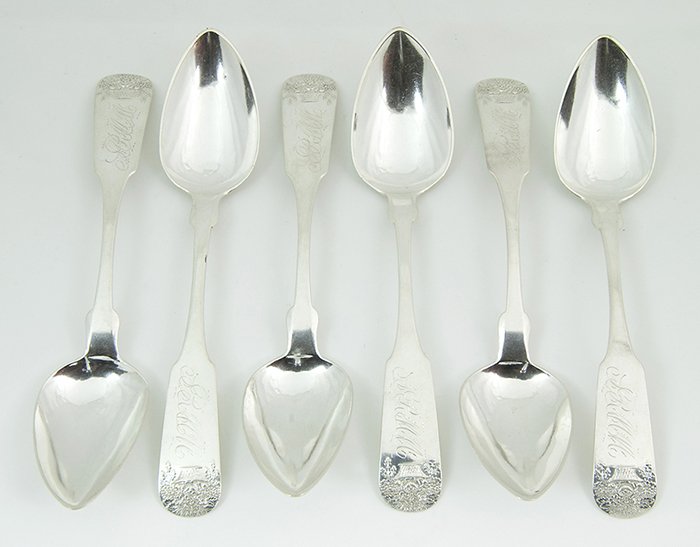 5 PIECES ENGLISH FLATWARE5 days Left(6) TIFFANY & CO. 'ANTIQUE IVY' STERLING SILVER PLACE SPOONSMar 29, 2026Lot of (10) American Coin Silver SpoonsApr 24, 2026Lot of (12) American Coin Silver SpoonsApr 24, 2026Eleven Tiffany & Co. 'Chrysanthemum' Sterling Silver Teaspoons,Set of Six Hyde and Goodrich Coin Silver Tablespoons, New Orleans, mid 19th c., Total App. Wt.-Mar 27, 2026STERLING SILVER (12) INTERNATIONAL Spring Glory pattern teaspoons, nice estate condition, they weighApr 10, 202619th C American Coin Silver Serving Spoons (14pc)Mar 28, 2026Vintage Floral Silverplate Teaspoon Lot of 5 Victorian Antique5 days Left8 Sterling Silver Long Spoons by "Stieff"Mar 27, 2026ANTIQUE RUSSIAN SIX SILVER TABLE SPOONs4 days LeftSet of 10 Antique Coin Silver Spoons4 days LeftGroup of 8 R&W Wilson Coin Silver SpoonsMar 25, 2026Set of 6 coin silver serving spoons5 days LeftInternational Silver "Frontenae" Sterling Silver Teaspoons Set of 1216 hrs Left10 Pieces Of Sterling Silver 9.3 OztMar 29, 2026