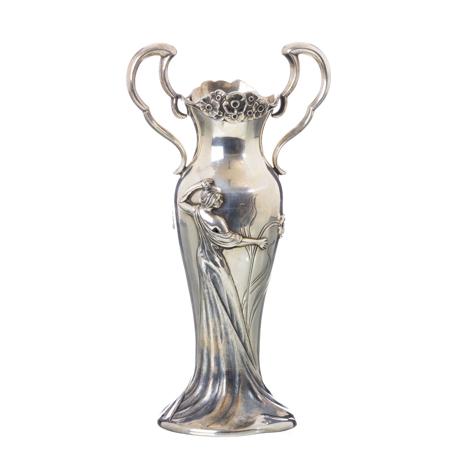 French Art Nouveau Figural Silver Plate Vase