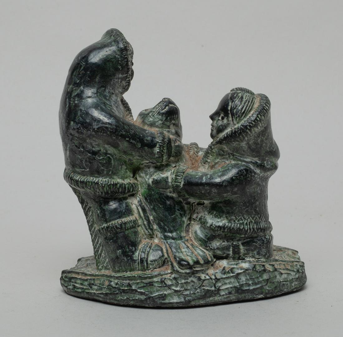 SoldWolf Original Inuit SculptureModeled as two Inuit man surrounding a sea lion, the bottom marked A WOLF ORIGINAL Hand made in Canada. Approx. 4.2-2.3-4.5 inch.See Sold Price
