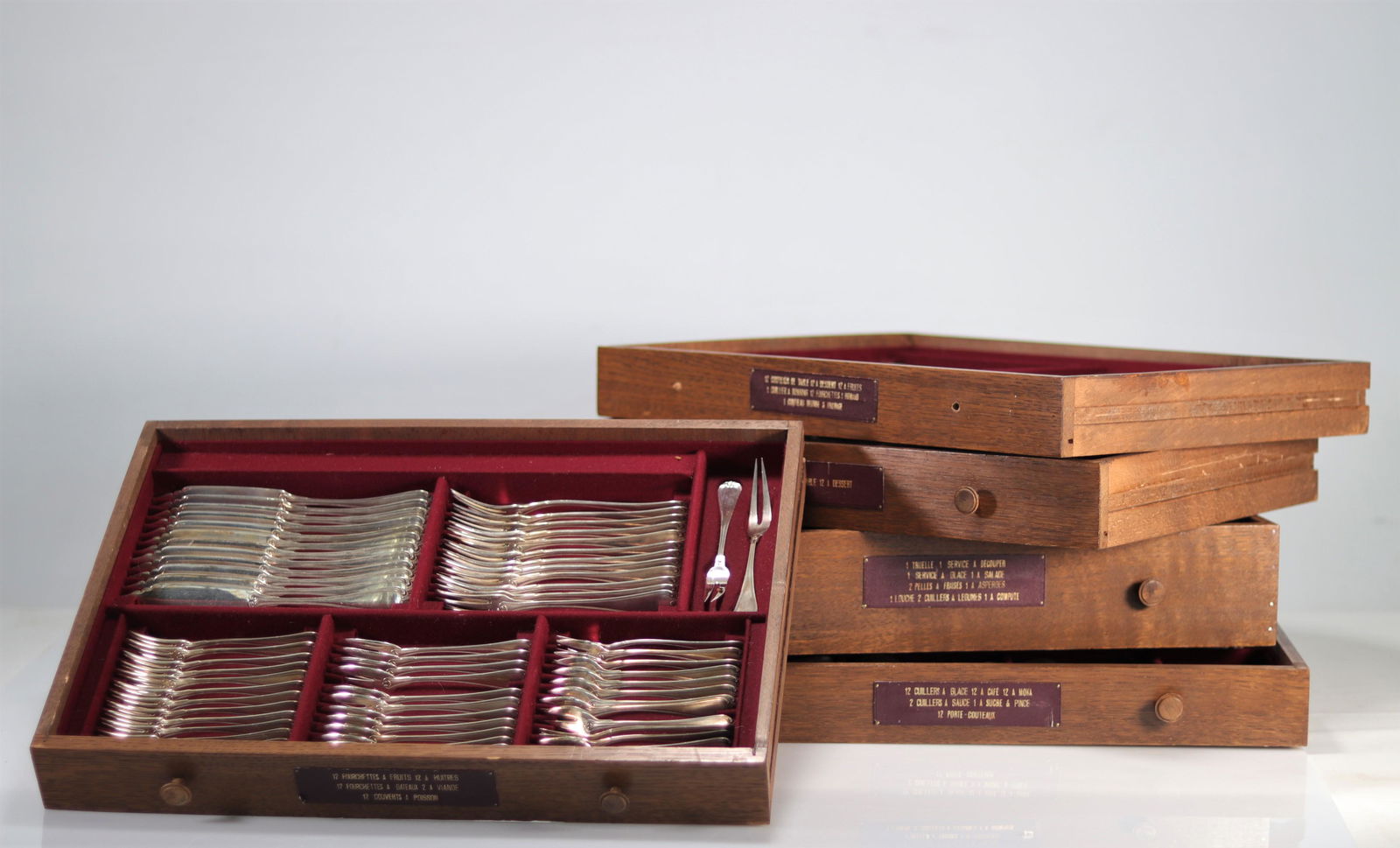 A composed lot of eight various antique French silver-plated CHRISTOFLE cutlery setsFeb 24, 2026Collection of Cased Cutlery Flatware Silver PlateVintage Canteen of CutleryThree boxed canteens of cutlery S. Tyzack & Sons , Ringfield etc 8 x 38 x 26cm (3)15 hrs LeftReed and Barton Stainless Flatware Service for TwelveFeb 28, 2026Posen Fiddle Thread 800 Silver Flatware Set 71 Pieces GermanyFeb 25, 2026International Sterling Silver Wild Rose Flatware Set for 8 with 37 PiecesMar 02, 202697Pc Collection Of Antique FlatwareFeb 21, 2026LUNT ELOQUENCE STERLING SILVER FLATWARE FOR (24)Feb 24, 2026Giorgio 800 Silver Flatware Set for 12 - 76 Pieces ItalyFeb 23, 2026Exquisite French Export Sterling Silver Flatware Set for 6 - 30 PiecesFeb 23, 2026Lunt Delicacy Sterling Silver Flatware Set for 8 with 33 PiecesMar 01, 2026Towle Silver Spray Sterling Silver Flatware Set for 8 40 Pieces6 days LeftDavid Andersen Town Hall 830 Silver Flatware Set 65 Pieces with New Storage Chest7 days LeftInternational Processional Sterling Silver Flatware Set for 8 - 36 Pieces with Storage ChestMar 03, 2026International Sterling Silver Serenity Flatware Set for 8 - 36 PiecesFeb 28, 2026