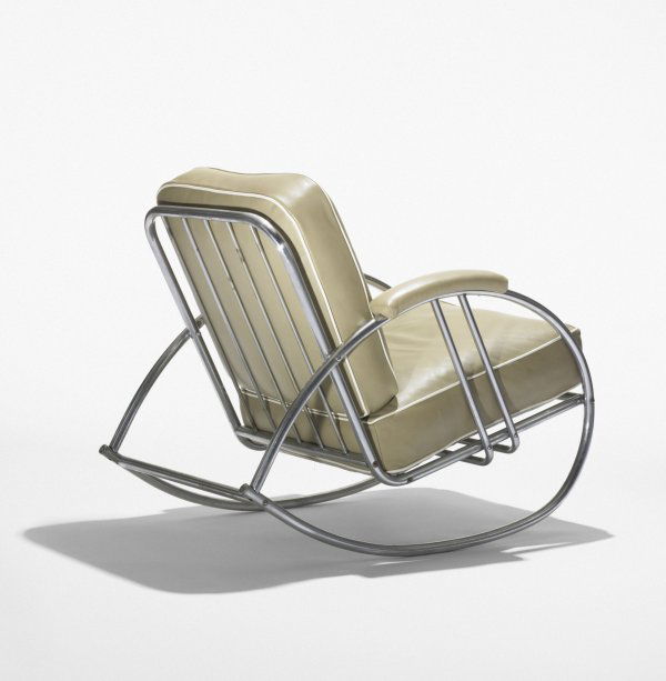SoldVladimir Kagan, Sculpted rocking chairVladimir Kagan Sculpted rocking chair Vladimir Kagan Designs, Inc.USA, c. 1953 / c. 1975upholstery, walnut 40 h × 32 w × 41.5 d in (102 × 81 × 105 cm) ProSee Sold Price