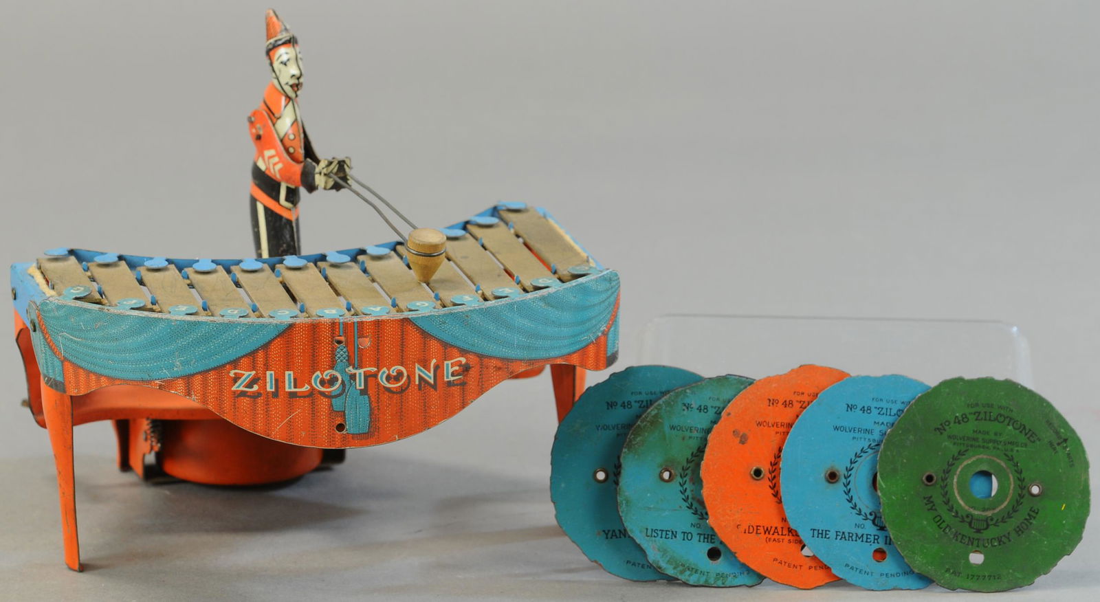 Wolverine, Xylophonspieler mit SteuerungsscheibeFeb 28, 2026Wolverine ca. 1930’s No. 48 Zilotone with 3 Discs22 hrs LeftWolverine No 48 Zilotone ToyMar 07, 2026Wolverine ca. 1930’s No. 48 Zilotone with 6 Discs22 hrs LeftWOLVERINE SEAL & POLAR BEAR PULL TOYFeb 27, 2026Wolverine, Over & Under Over The Top TrackFeb 28, 2026WOLVERINE RABBIT & CHICK EGG PULL TOYFeb 27, 2026Wolverine No 27 Drum Major Lithograph WindUp ToyMar 07, 2026Biller, Clown in AutoFeb 28, 2026Louis Marx Lithographed Tin Whoopee Mobile ToyMar 07, 2026BOXED WOLVERINE MERRY GO ROUND BELL CHIMERFeb 27, 2026ASHIO JAPANESE EXPRESS CYCLEFeb 27, 2026ESSDEE, Crazy CarFeb 28, 2026WOLVERINE SANDY ANDY ROOSTER PULL TOYFeb 27, 2026HESS GERMANY BROWN RACERFeb 27, 2026LEHMANN VELLEDA AUTOMOBILEFeb 27, 2026