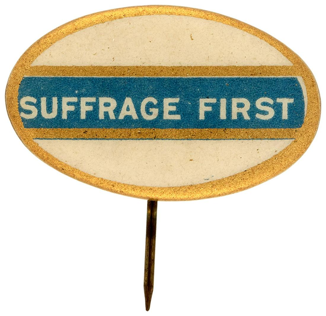 WOMEN'S "SUFFRAGE FIRST" OVAL BUTTON.