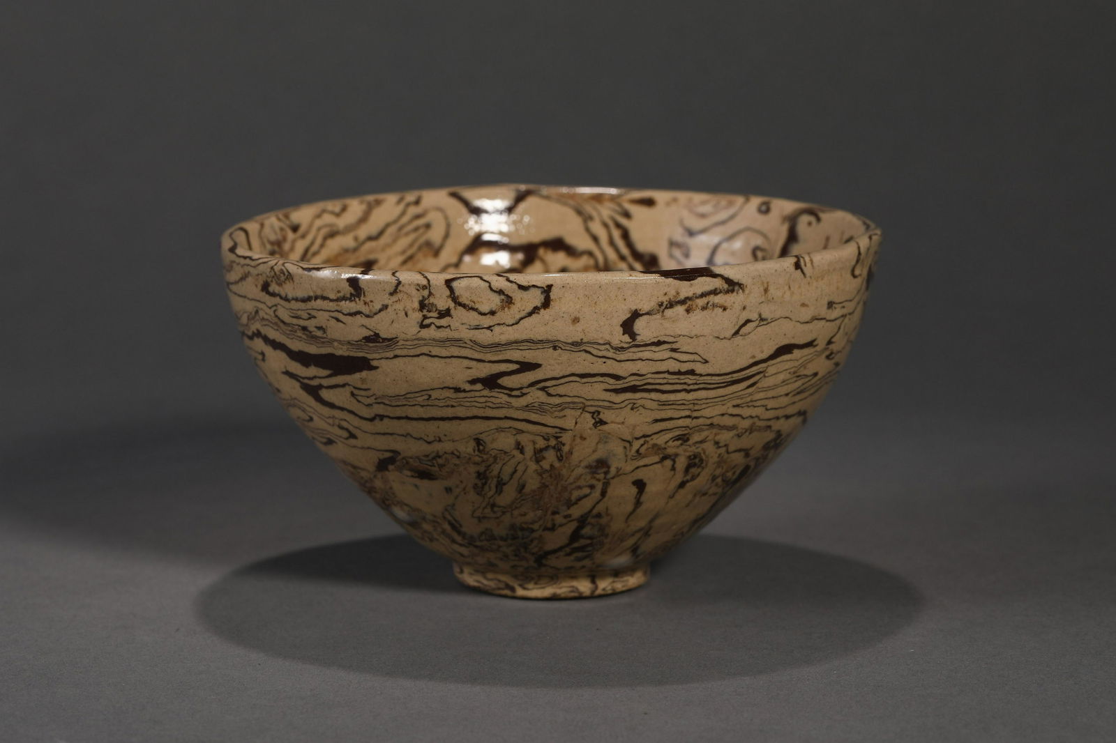 A OCTAGONAL CUP WITH WOOD-GRAIN GLAZE