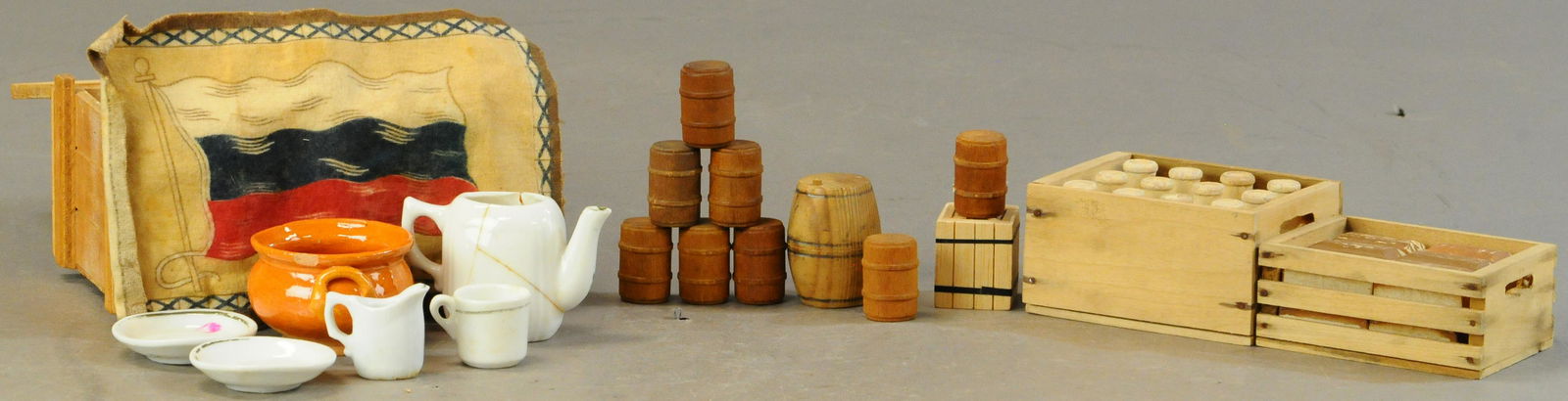 WOODEN BREAD, MILK BOTTLES & CERAMIC DINNER SET