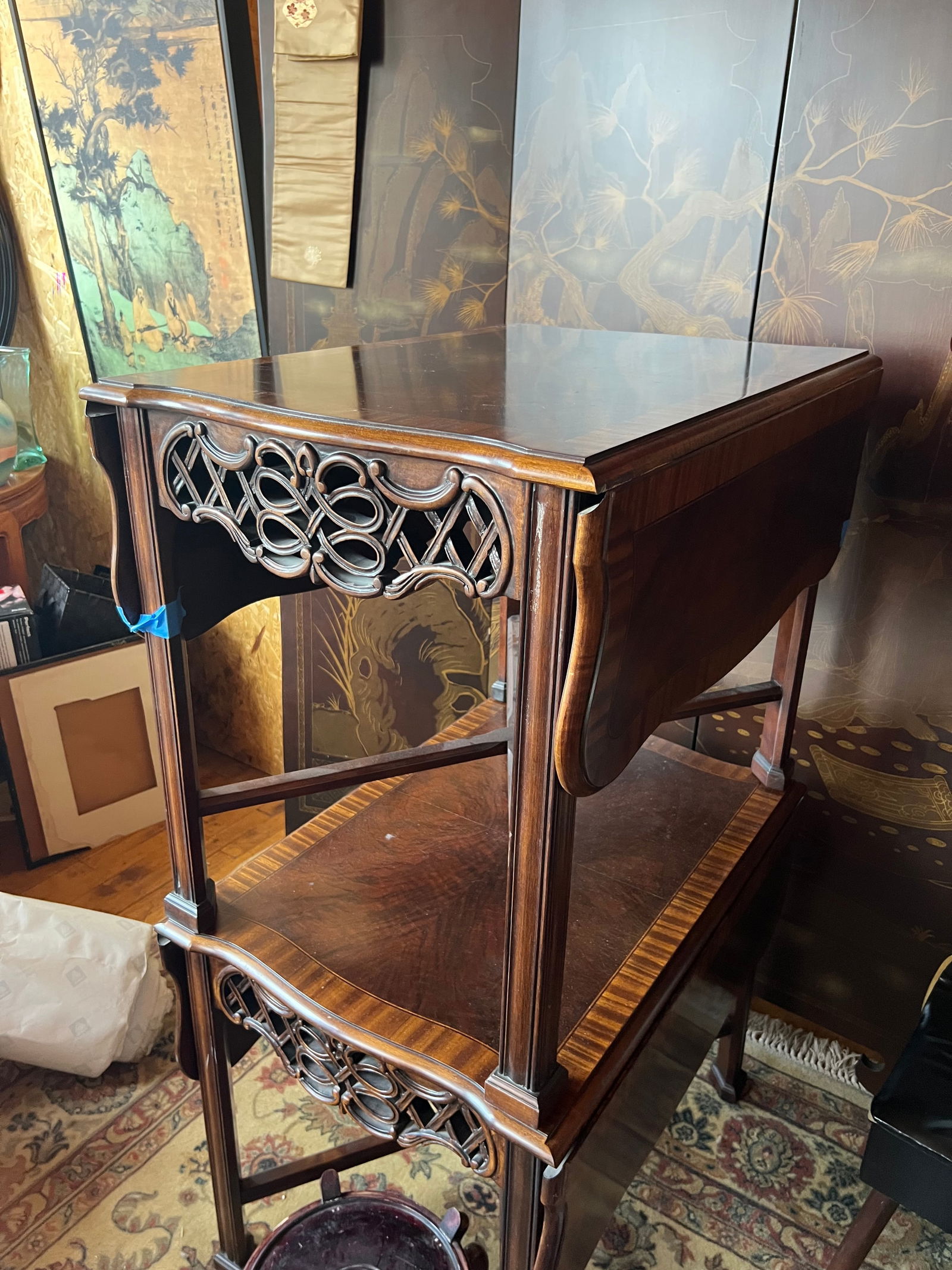 Antique Anglo Indian Military Campaign Wood Carved With Brass Accents Table Tea Chest4 days LeftAntique William IV Mahogany Drop-Leaf Centre TableLouis XV Style Hand-Carved Mahogany Side Table with Bookmatched Wood GrainMar 22, 2026Vintage Mahogany Flip Top Side Table with Brass HardwareMar 21, 2026Rustic Antique Primitive Table with Drawer and Turned Legs4 days LeftWood Folding TableMar 28, 2026An Art Nouveau Louis Majorelle marquetry decorated salon table7 days LeftUnique Cowboy Oak Library Table with Mosaic Marquetry TopMar 21, 2026Writing or tea table, England, 18th C., table with drawer, carved mahogany top over oak base with3 days LeftSalem, Mass. Chippendale Mahogany Dining Table17 hrs LeftHekman Yew Wood English Drop Leaf Sofa Table with Dovetailed DrawerMar 22, 2026Mahogany Slant-Top Bureau Desk with Queen Anne LegsWoodbridge Marseille Bordeaux Wood Nesting Tables Set of 2Mar 22, 2026Antique Tiger Oak Library Table with Cabriolet Legs and Drawer2 days LeftA George III-style painted wood and composition pier table, of recent manufacture,4 days LeftAn antique Empire flame mahogany, partners deskMar 22, 2026