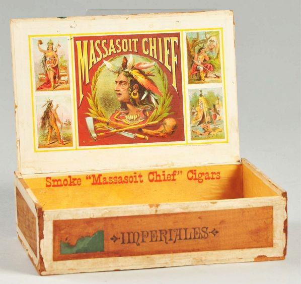 Wooden Massasoit Chief Cigar Box.