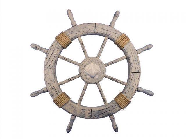 Wooden Rustic Decorative Ship Wheel With Seashell 30in.