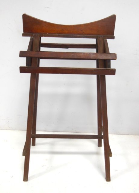 SoldAntique Wooden Saddle StandVintage wooden saddle stand with slatted design. Shows wear and age, perfect for restoration or as a decorative item. Offered in estate-found condition. Please see photos for more details on the condiSee Sold Price