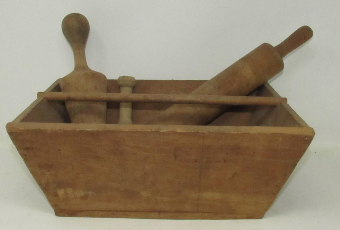Great Primitive Lot of Wood Paddles and Butter Mold PressesMar 16, 2026Woodenware Lot3 days LeftLOT OF WOODENWARE, BUTTER MOLDSFeb 26, 2026LOT OF (7) WOODEN POTATO MASHERSFeb 26, 2026Lot of Early Wooden Kitchen ItemsMar 07, 2026Primitive Wood Butter Press and PaddlesMar 16, 2026Large Vintage Wooden Rolling Pin Lot of 4Mar 16, 2026COUNTRY PINE TOOL CARRIER2 days LeftRustic Vintage Wooden Trug Toolbox Tote 20 x 19.5 x 113 days LeftWooden Rolling Pins and SpoonsMar 16, 2026Antique English Wood Carrying BasketCountry Dough Box & Utensil CarrierMar 07, 2026Handy Washer Wooden Wash Machine5 days Leftearly medial handle double bay cobbler's tack boxFeb 28, 2026Primitive Antique Spinning WheelFeb 28, 2026Early Wood ToteMar 01, 2026