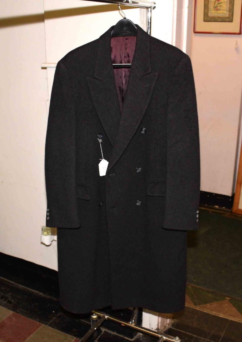 SoldCHANEL BLACK WOOL LONG COATwool/cashmere blend fitted coat with notched collar; lined condition: missing two buttons Size: 38; back length: 51 inchesSee Sold Price