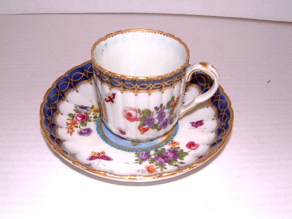 WORCESTER PAINT DECORATED CUP & SAUCER