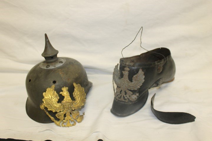World War I German helmet and cap, both with eagle