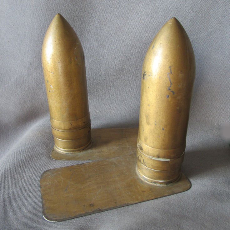 World War II Trench Art Shell Casing Bookends, Folk Art