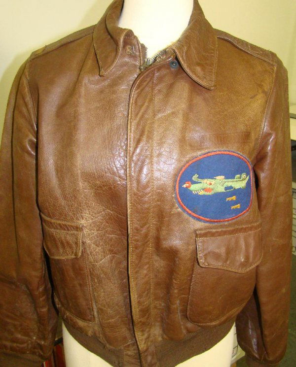 SoldWorld War II Era Contract A-2 JacketWorld War II Era Contract A-2 JacketInterior markings for Army air forces, talon zipper, single piece back, pointed flap pockets, various stampings on cotton liner, with squadron patch, later added foSee Sold Price