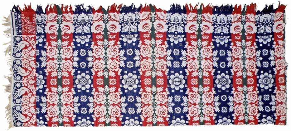 WOVEN JACQUARD COVERLET, DATED 1850