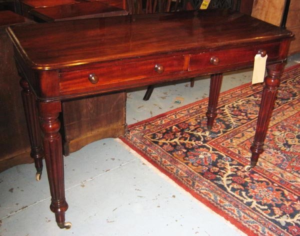 ANTIQUE CHIPPENDALE MAHOGANY WRITING TABLE.Feb 25, 2026Carved Mahogany & Rosewood Banded Top Two Drawer Ball & Claw Writing Table by Globe Colony Tables5 days LeftGeorge III leather top mahogany writing tableFeb 19, 2026Antique Walnut Victorian One Drawer Writing Table5 days LeftRegency Style Tooled Leather Inset Wood Writing DeskFeb 21, 2026A MAHOGANY WRITING-TABLE, 20TH CENTURY, OF GEORGE II STYLEMar 03, 2026French Louis XV Style Mahogany Writing Table, 20th c., H.- 29 1/4 in., W.- 41 1/4 in., D.- 19 3/4Feb 27, 202619th Century Mahogany Inlay Drop Leaf Table With One Drawer5 days LeftAntique Eastlake Style Mahogany & Walnut Card Game Table. Very Good Condition. See pics.Antique Wooden Trestle TableMar 03, 2026American Cherry and Mahogany Drop Leaf TableFeb 25, 2026Antique Walnut? Wooden Side Table w/ Scalloped Top & Fluted Legs. Good Condition. See pics.ENGLISH MAHOGANY LIBRARY TABLEMar 07, 202619th Century Mahogany Pedestal Drop Leaf Table5 days LeftA 19th Century Oak one drawer table together with a Mahogany tilt top occasional table and a wooden11 hrs LeftMahogany Urn Inlay Fold Over Top Game Table5 days Left