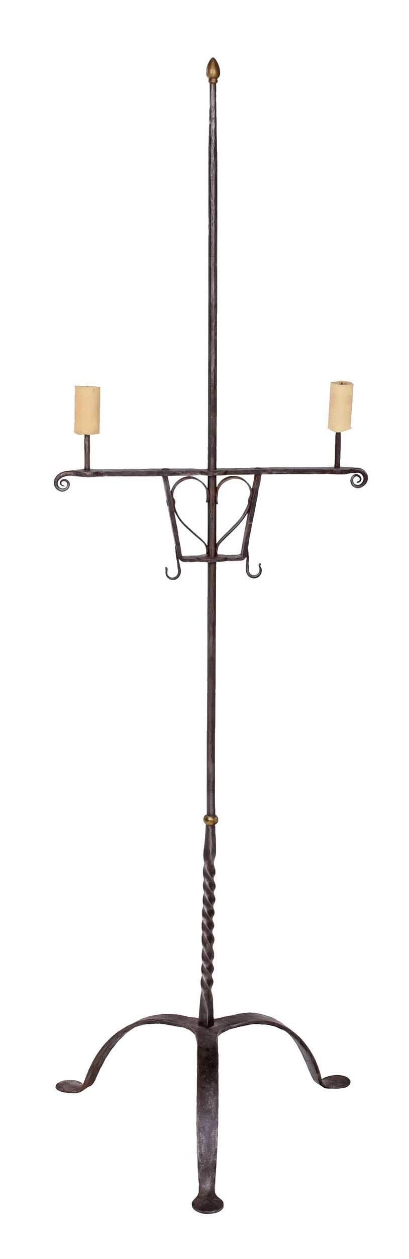 Wrought Iron and Brass Adjustable Candlestand