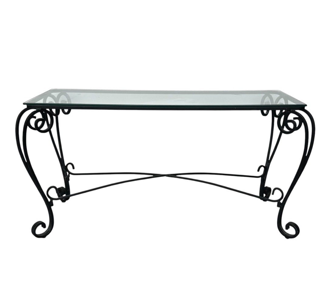 Mid-Century Console Table With Sunburst Wrought Iron Travertine Base And Glass TopBidhaus4.2(847)$1001 day Left