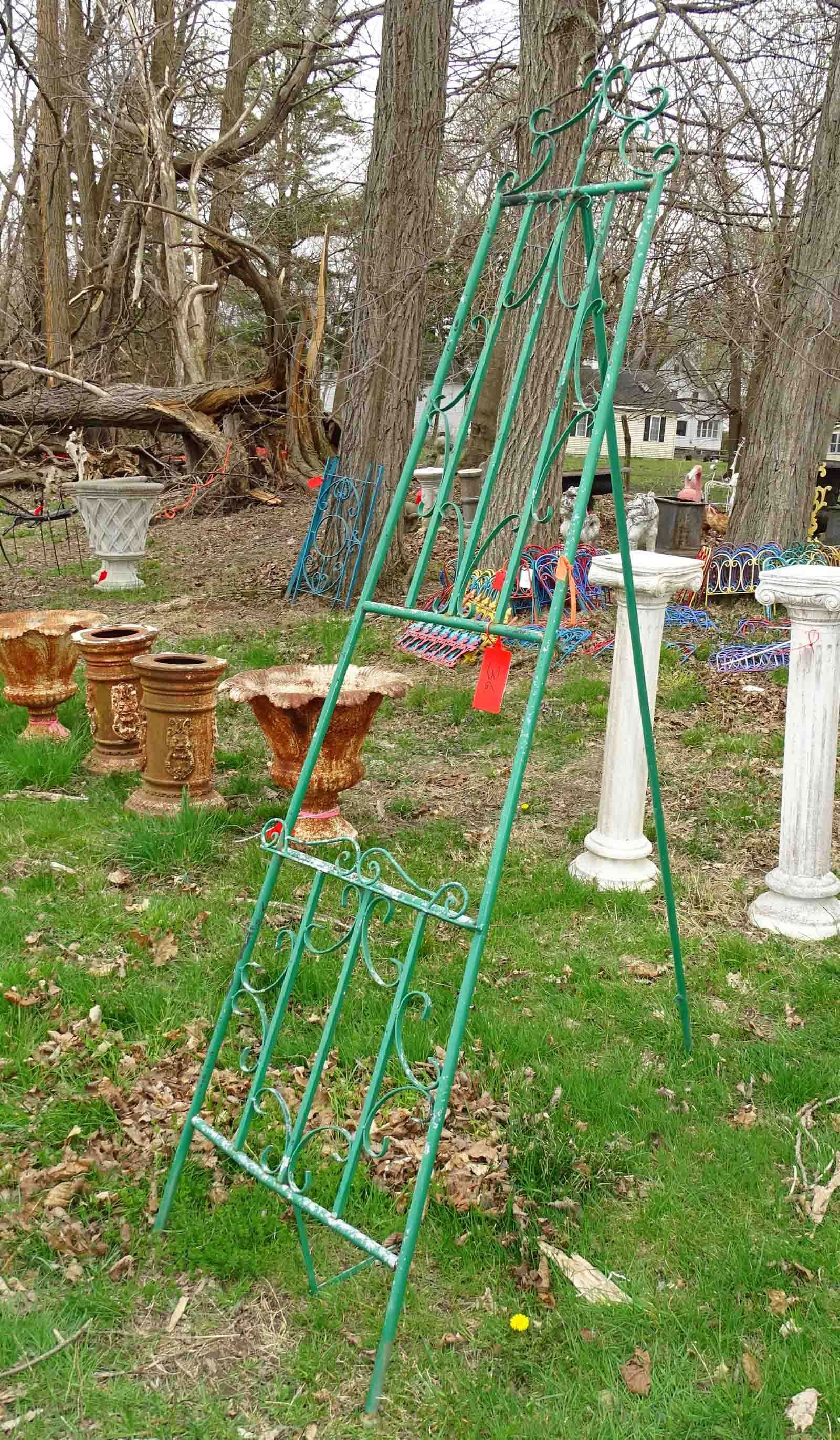 Cast Iron Standing Basket Tree Inc. 8 Various Retired Longaberger BasketsMar 02, 2026Painted Wrought Iron Door w/ Door FrameMar 07, 2026Wrought Iron Scrolling Pattern Cafe Patio Set Table w/ 4 ChairsVintage Metal Scrolled Easel4 days LeftWrought Iron Plant StandFeb 27, 2026Brass Art EaselExcellent Art Deco Cocktail Table & Folding ChairsFeb 28, 2026Pair of Wrought Iron Plant StandsMar 06, 2026White Painted Round Iron / Metal Gazebo4 days LeftGold metal easelMar 03, 2026Antique Late 19th Century Scorched Bamboo EaselEarly wrought-iron & wood gun rackMar 28, 2026Folk Art Carved Mahogany EaselMar 26, 2026Early Horse Drawn Carriage Bench Ladderback ChairMar 01, 2026Ornate table-top display easel, likely made of cast metal like bronzeFeb 28, 2026Brilliant Set Vintage Cast Iron Garden Vine Race ObeliskFeb 28, 2026