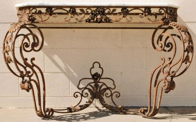 Wrought-Iron and Marble-Top Console TableMar 29, 2026Diminutive Wrought Iron Marble Top Console Table4 days LeftWrought-Iron and Marble-Top Console TableMar 29, 2026French Marble Top Iron Butcher's TableMar 27, 2026FRENCH ROCOCO STYLE IRON AND MARBLE CONSOLE TABLE3 days LeftFrench Marble Top Wrought Iron Console, 20th Century, the serpentine top above a scrolled console3 days LeftLarge Wrought-Iron and Marble-Top Console TableMar 29, 2026Marble Top Console Table with Six Legs Louis XVI Inspired Design5 days LeftLouis XIV Style Marble Top Console TableMar 26, 2026Maitland Smith Ornate Marble Top Console Table with Carved Feet5 days LeftLouis XVI Style Marble Top Console TableMar 26, 2026Louis XV style wrought iron console table with pattern inlaid marble / stone top with gilt paw feetMar 28, 2026A Console table or Wall console, wood and marble, mounted with gilded bronze, Louis XVI style, 20th.Apr 01, 2026FRENCH MARBLE-TOP CAST IRON BISTRO TABLEMar 27, 2026Regency Style Console With Marble TopHekman French Style Console Table with Marble Top 50.5in5 days Left