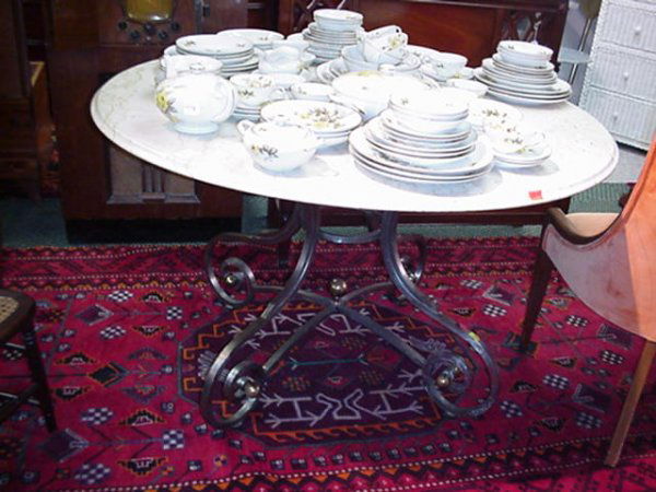 Wrought Iron Round Beveled Edge Marble Top Table