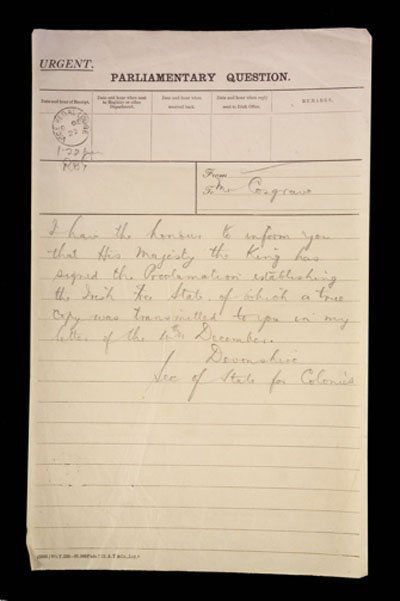 W.T. COSGRAVE A manuscript pencilled note on a Br