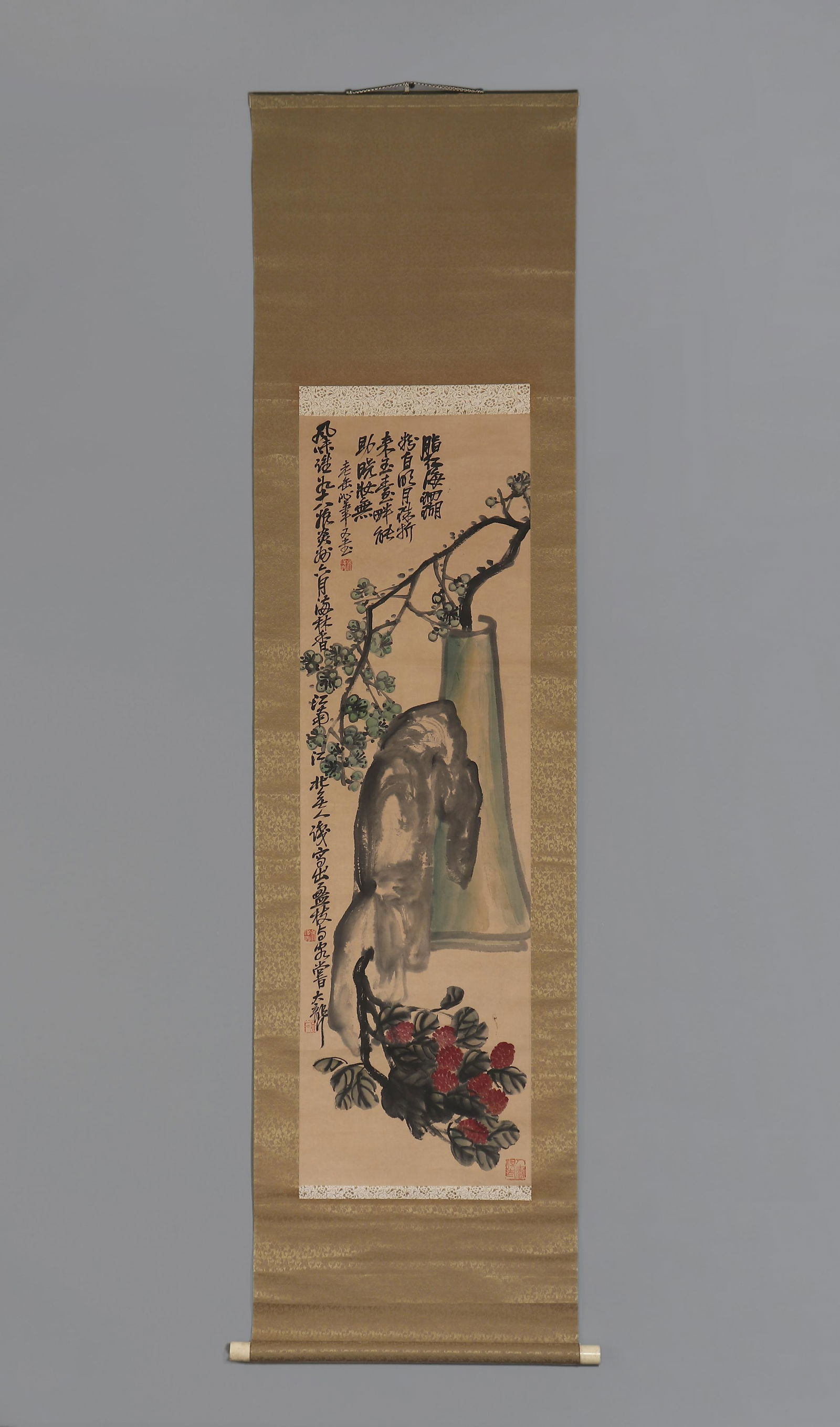 Wu Changshuo fine plum stone chart vertical axis