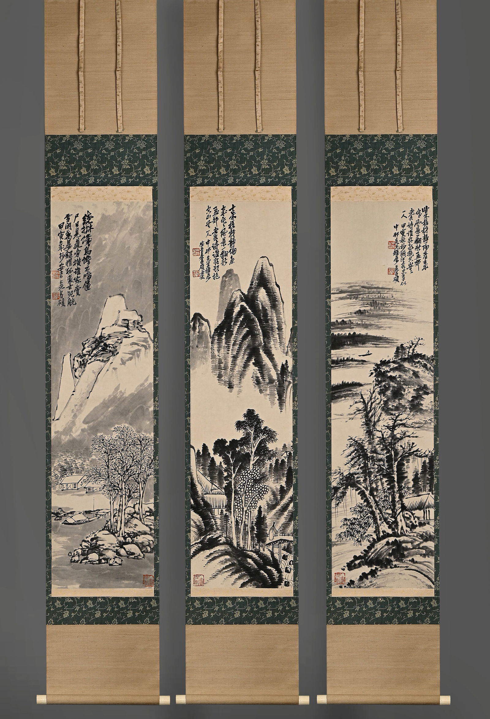 Wu Changshuo landscape drawings this three screen vertical axis